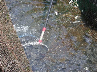 管理3:このときに生きている魚を全て数えます。成長によって収容数と生簀の大きさを替えるためです。
