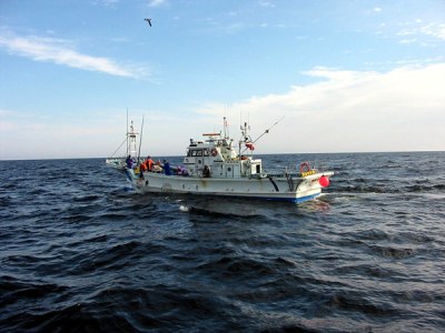 漁期は3月中旬から8月下旬で、漁場は漁期当初の浅い水深帯から次第に深い水深帯へと移動していきます。