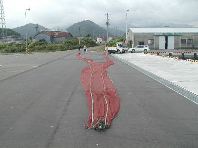 こぎ網1:こぎ網の全景です。陸上で見ると大きく見えます。