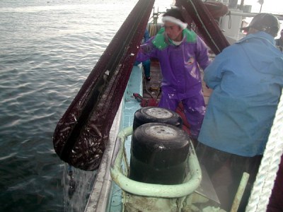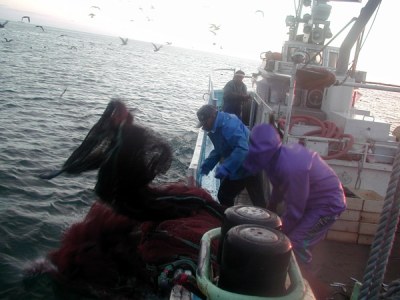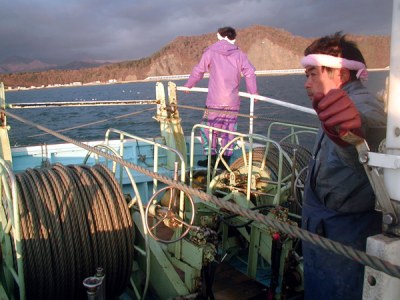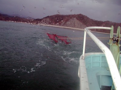 揚網2:網を右舷に引き寄せます。