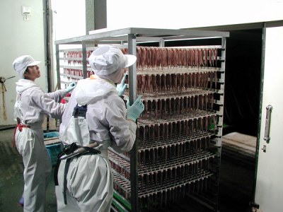 加工2:串にとおしたシシャモを乾燥機で乾燥させます。