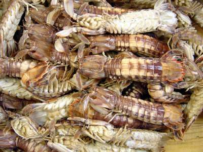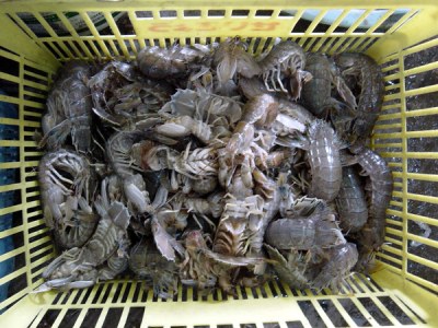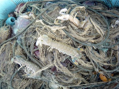 漁獲物1:網から外されたシャコ。