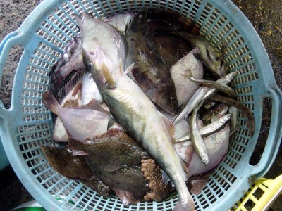 漁獲物1:カレイ類、ソイ類、ホッケなどもかかります。