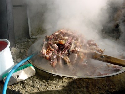 茹で上がり:石狩湾特産の茹でシャコ完成です、美味しそう!