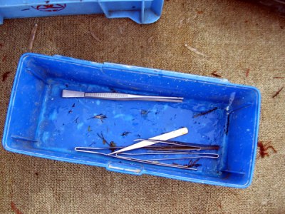 選別2:シラウオは小さく傷つきやすいので選別にはピンセットを使います。
