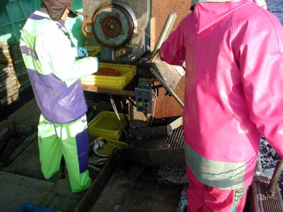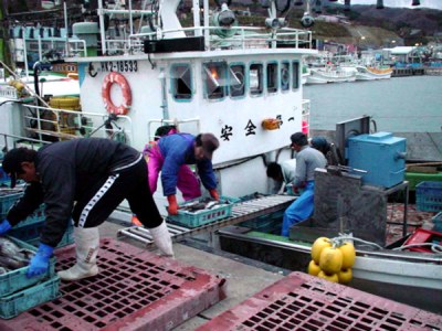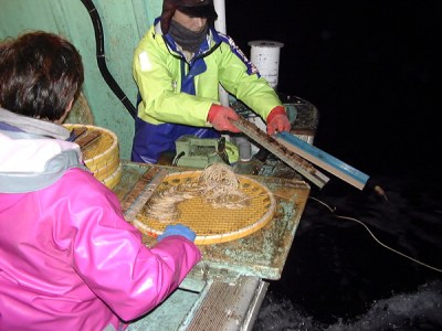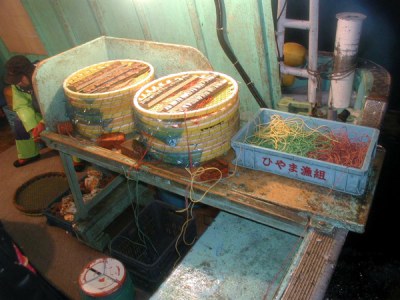 通常の操業は、5時半頃に出港し、6時頃漁場に到着します。帰港は小型船が11時から12時、大型船は14時から15時(場合によって16時)となっています。