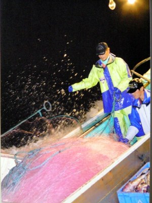 使用する漁網は151.5メートル(100間)の3つ切りを1反とし、投網は水深200メートル以深の漁場は1建て100反以内を2建てまで、水深200メートル以浅の浅場は1建て25反以内を4~8建てまでとしています。