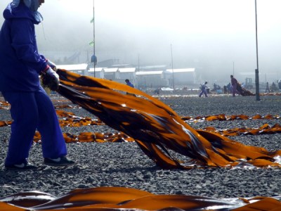 乾燥3:コンブが干場一面に敷詰められた風景です。