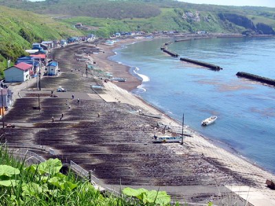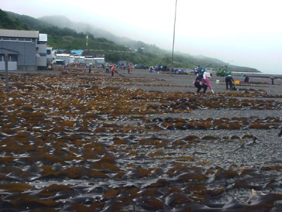 漁があった日は、天日(てんぴ)干しされたコンブが干場(かんば)一面に整然と並べら、その風景はまるで大きな黒いじゅうたんを敷詰めた様に見え、町中が一時磯の香りに包まれるほどです。