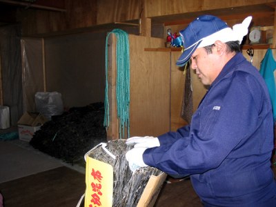 検査:検査協会の人がコンブの等級検査をしているところです。