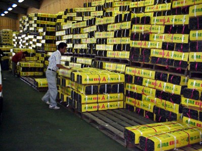 保管:検査を受けたコンブ(1駄20キログラム)が漁協の倉庫に保管されているところです。