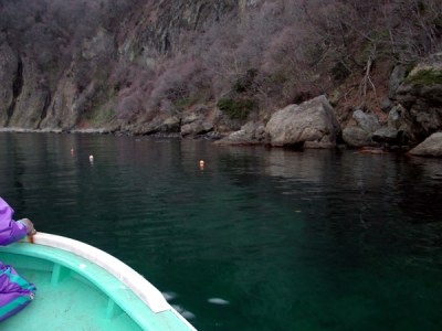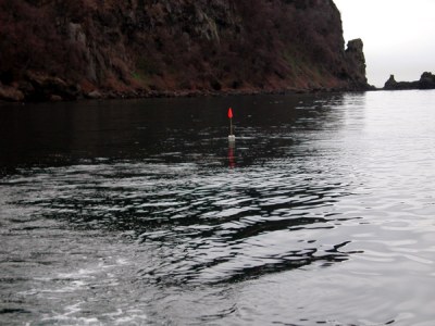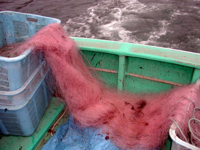 出港:朝4時に出港して10分程度で漁場に着きます。事前に仕掛けておいた刺し網の浮玉が見えてきました。