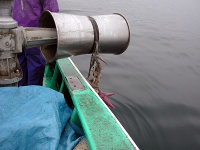 揚網3:時化で2日間の留め網をしたため、ヒトデが集まり傷ついたナガヅカもありました。