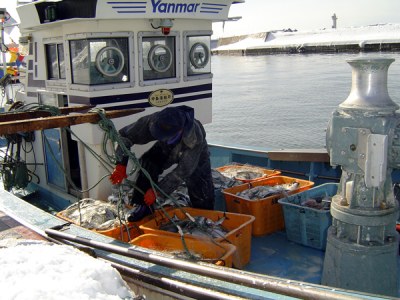 ニシンの漁獲には、数の子をとるため沿岸で行われる刺し網漁業と小型定置網漁業のほか、沖合で漁獲される沖合底曳き網漁業があります。沿岸で行われる刺し網は日本海沿岸では1月10日頃から3月31日までの間、操業されています。