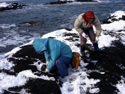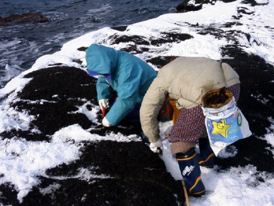 採取2:12月から3月の最も寒い季節の漁業です。漁場に雪が積もっていることもあります。