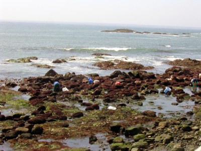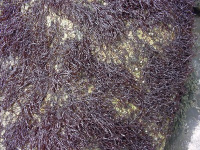 操業2:石の上面、側面にびっしりとフノリが生えています。