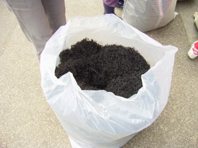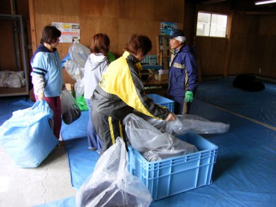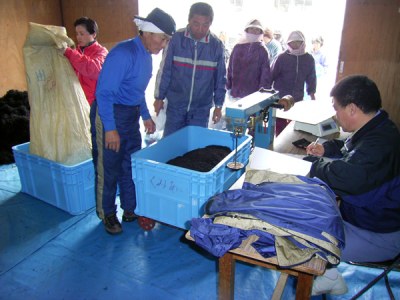 出荷2:集荷日に漁協へフノリを運び、計量します。
