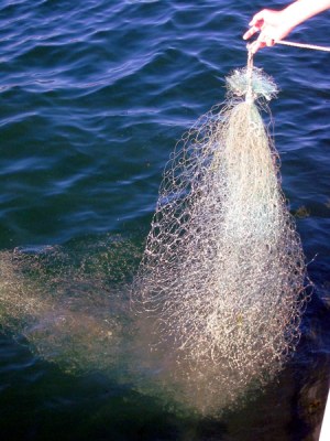 採苗器:噴火湾沿岸のホタテガイ採苗は、古くなった刺し網を使った「棒網」が 主体となっています。「棒網」の長さは3~5メートルくらいです。