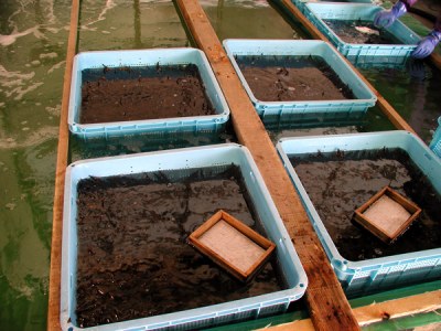 ホッカイエビは浮遊幼生期がなく、雄性先熟の性転換をし、満1才で雄、満2才で雌として生殖し、生活史のすべてをアマモ場に依存します。