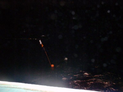 投網完了:最後に目印のボンデン(浮標))を投入します。