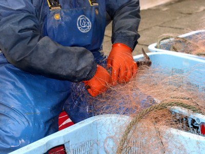 ホッケは礼文町の漁獲量の半分以上を占め水揚げ金額の約20パーセントを占める重要な魚種です。定置網もありますが主力は刺網で、ほとんどのホッケは刺し網で漁獲されています。ほっけ刺し網漁業は漁期も半年以上と長いうえ、網はずしにパートを必要とするので、島の一大産業になっています。