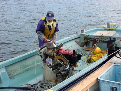 | 漁船規模 | 船内外機船1隻(2.3トン)、船外機船1隻(1トン、9.9馬力)の2隻で行う。 船外機の馬力は9.9馬力と決まっている。  |