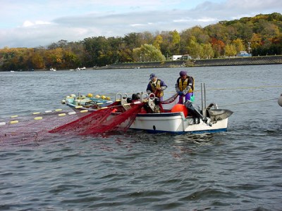 網走湖のしらうお・わかさぎひき網漁は、9月中旬から11月下旬までの秋に行われています。