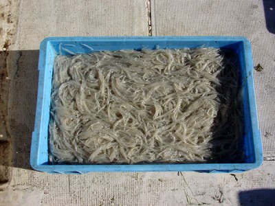 洗浄4:洗浄され、箱に収容されたシラウオです。