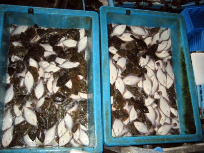 鮮魚出荷3:マコガレイの他ホッケ、カナガシラ、アンコウ、カワハギ等が鮮魚として出荷されます。