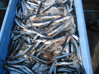 餌:餌は小型定置網で獲れたカタクチイワシやオオナゴ(イカナゴ)等を冷凍しておいて使用します。