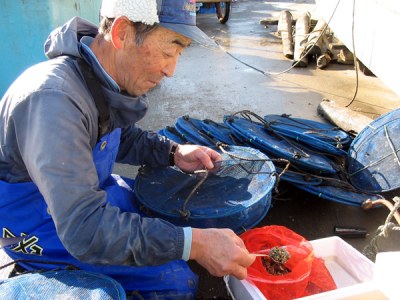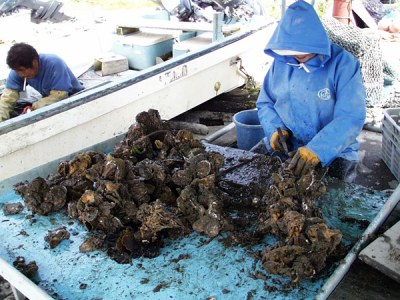 シングルシードカキ養殖については平成15年度から少しずつ出荷が行われていますが、その年や漁場の環境などによって生産量は不安定となっています。現在、大量生産技術の確立に向けて養殖漁家や関係機関が一体となって養殖試験などの取り組みを進めているところです。