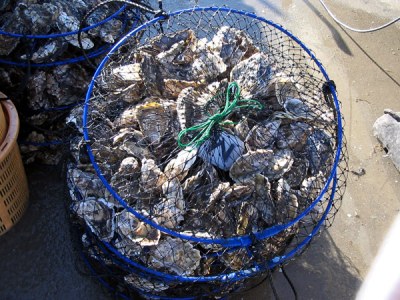 養殖カキ:約1年間養殖したシングルシードカキです。