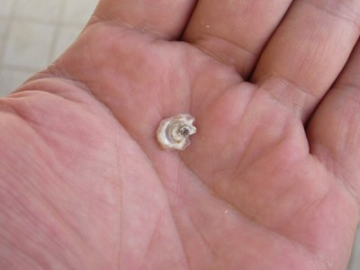 種苗1:指先にあるのがシングルシードカキの種苗です。