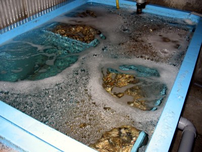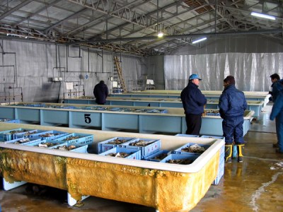 蓄養:引き揚げたカキは紫外線などを使って2日間以上殺菌を行います。