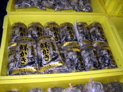 殻付き出荷されるカキ:シングルシードは殆どが殻付きで出荷されます。