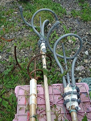 ツブマッカ:螺旋状になっているため沈めるのに苦労しますが、コンブを一度にたくさん採ることができ、コンブの密生している場所や水深の深い場所などで主に使用しています。鉄製のものと塩化ビニール製のものがあります。