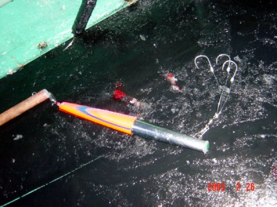 漁場に着くと、漁具を海底から2~6メートルぐらい上げて上下させる(しゃくる)ことから、この漁具を「しゃくり棒」と呼んでいます。