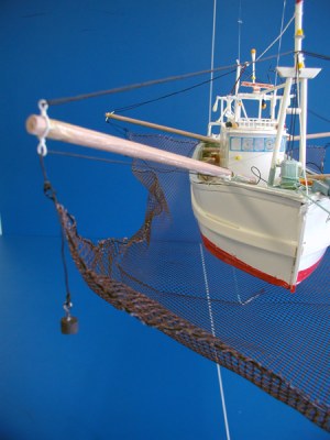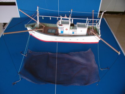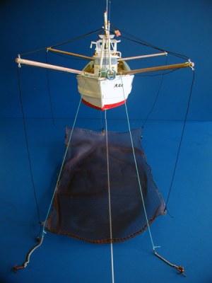 模型2:船の横から見たものです。船の下に網が敷かれています。