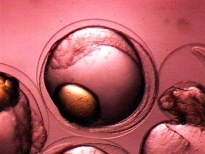 受精卵の発生段階を観察します。