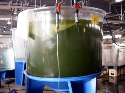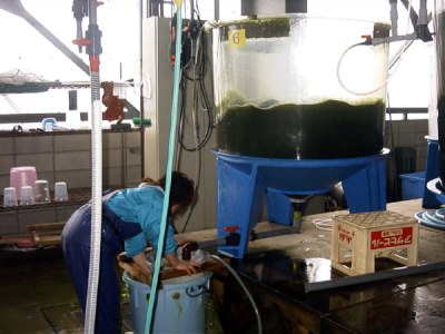 円形水槽を使ってシオミズツボワムシを培養します。