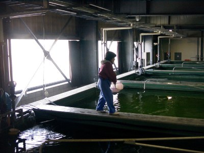 水温管理は、12月中旬までは自然水温、12月下旬頃より8℃を維持し、3月以降4月にかけて14℃まで徐々に水温を上昇させます。