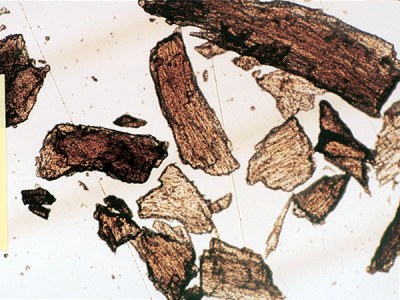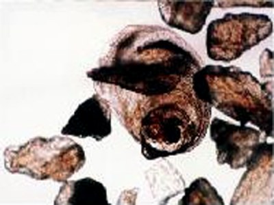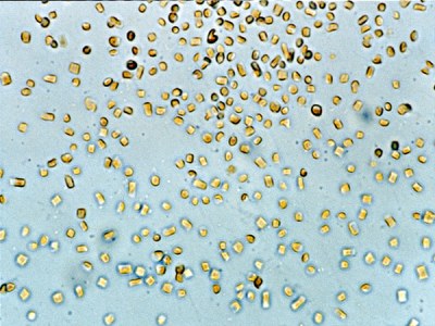 付着基質の粉砕したカキ殻です。(約0.2ミリメートル)