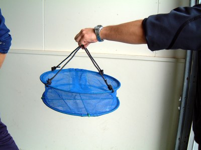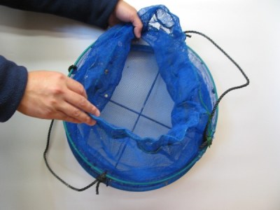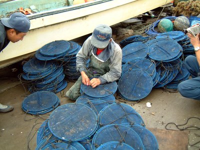 その後、各漁家で1ミリメートル目合いの養殖用籠(丸籠)に収容し、養殖を開始します。
