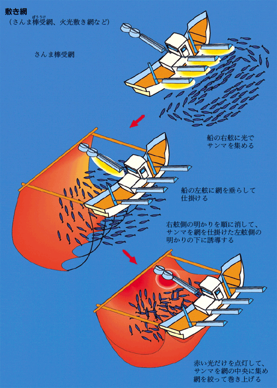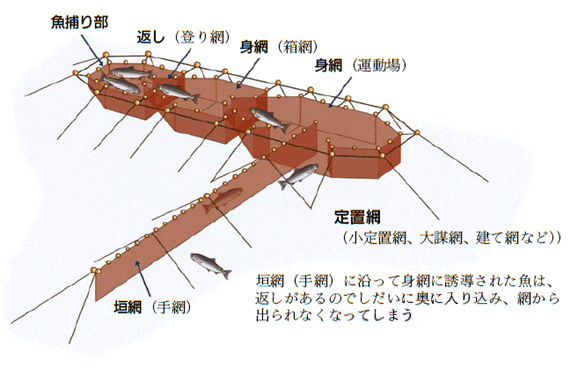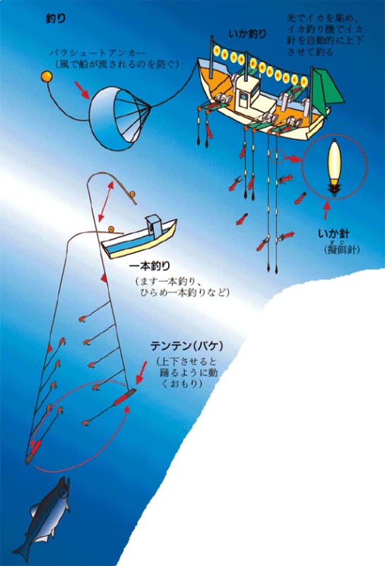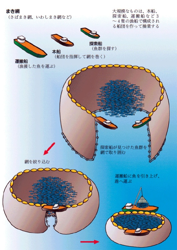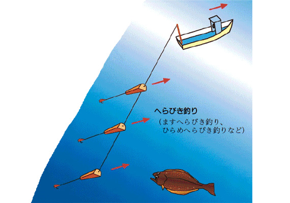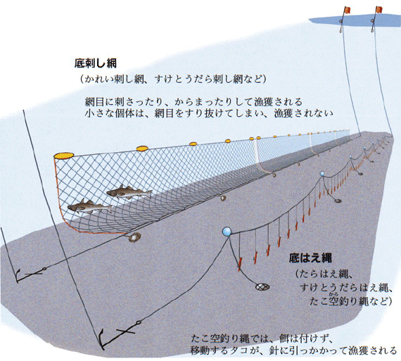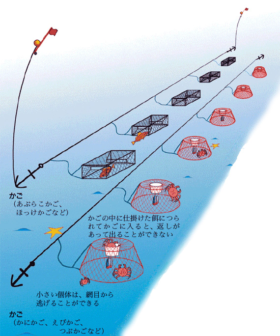 転載元:漁業生物図鑑 新 北のさかなたち注意:「新 北のさかなたち」からの転写のため、漁法名称は本CDで使用している呼称と異なる場合があります。 ページ内目次ひき網:かけまわしひき網:オッタートロールひき網:打瀬(網)けた網(噴射式)定置網、小型定置網底建網まき網敷き網流し網(底)刺し網・(底)はえ縄(浮き)はえ縄かご(魚類)・かにかご、えびかご、つぶかご箱(たこ箱)いか釣り・一本釣りひき縄釣り(へらびき)たこ(いさりびき)・樽流し(いさり流し)(垂下式)養殖挟み採り・かぎ・たも・採藻・潜水(器)やな(ウライ)張待網どうひき網:かけまわし ひき網:オッタートロール ひき網:打瀬(網) けた網(噴射式) 定置網、小型定置網 底建網 まき網 敷き網 流し網 (底)刺し網・(底)はえ縄 (浮き)はえ縄 かご(魚類)・かにかご、えびかご、つぶかご 箱(たこ箱) いか釣り・一本釣り ひき縄釣り(へらびき) たこ(いさりびき)・樽流し(いさり流し) (垂下式)養殖 挟み採り・かぎ・たも・採藻・潜水(器) やな(ウライ) 張待網 どう