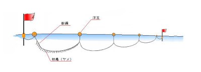 ポリプロピレン繊維を原料とした水産用ロープ。(株)宇部日東化成の商品名。