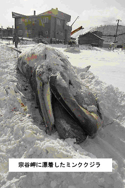 先日も宗谷岬でミンククジラが漂着し、話題となりました(1月28日付道新)。本種の漂着については、次頁の表にあるとおり8件も記録があるのですが、ほとんどが道東のもので、道北では報告がありませんでした。漂着したミンククジラは体長8.3メートル、体重約4トンと日本沿岸で見られるなかでは大きなものでした(写真)。