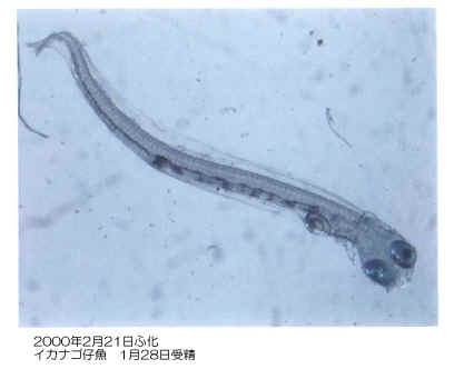 今年の1月28日に採集した親を用いて人工授精を行い,中央水試でふ化実験をした結果,平均水温8.2度で,受精から25日目にはほぼふ化が終了しました(写真)。
