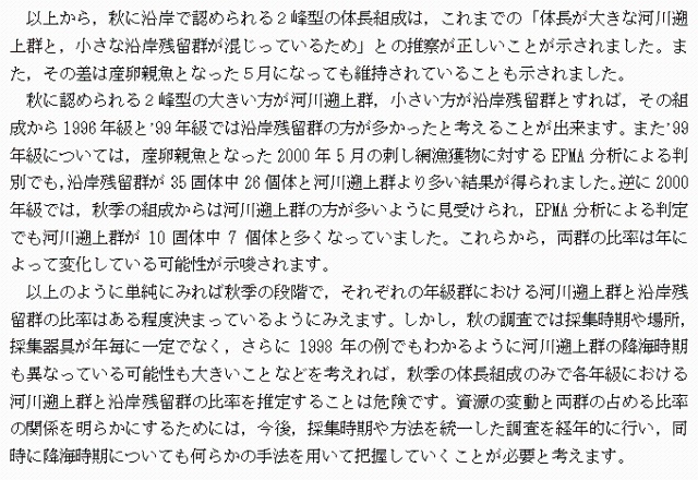 耳石のストロンチウム・カルシウム比(Sr/Ca)から判別した石狩におけるシラウオの河川遡上群と沿岸残留群の体長