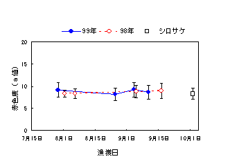 図5 カラフトマスの赤色度(a値)