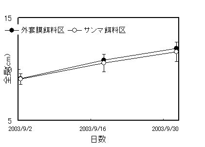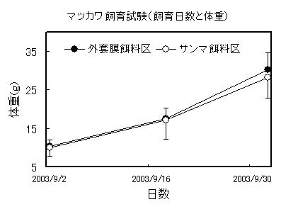 | (パーセント) | 飼育開始 | 外套膜餌料 | サンマミール餌料 |